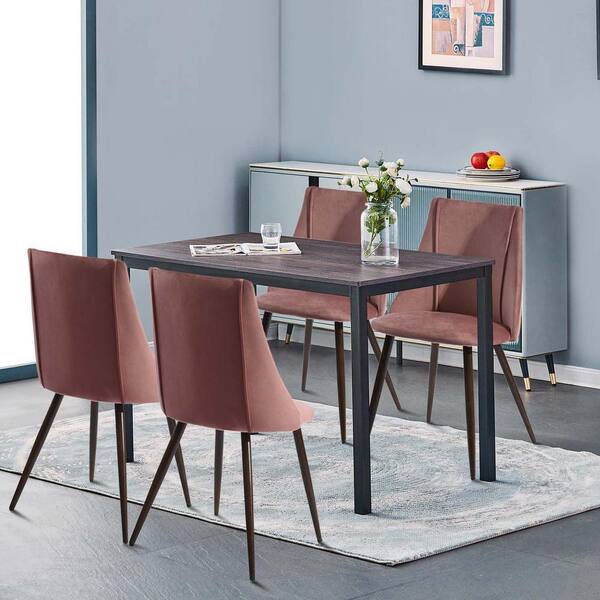 Brandt Smeg Pink 5 Pieces Rectangle MDF Walnut Top Dining Table Chair Set With 4 Upholstered Dining Chair