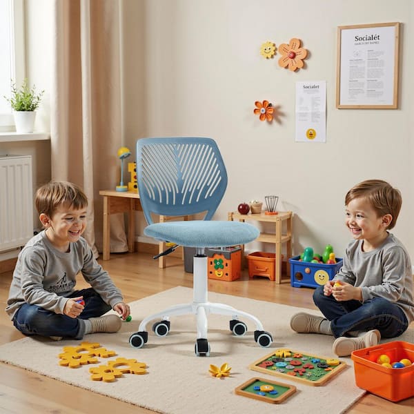 CARNAT Ice Blue Ergonomic Kids Desk Chair Adjustable Height Swivel Study Chair with Breathable Plastic Back