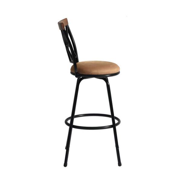 Calamus 29 in. Camel High Back Metal Frame Swivel Bar Stool With Fabric Cushioned Seat(Set of 2)