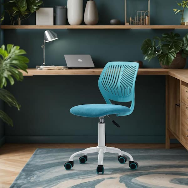Carnation Fabric Adjustable Height Ergonomic Office Chair in Cyan Blue with Breathable Back Swivel Study Computer Chair