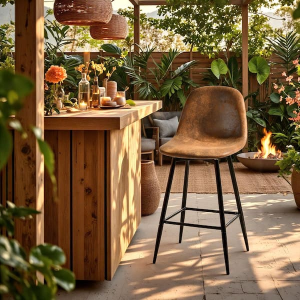 Charlton Cognac Suede 26 in. Counter Height Swivel Bar Stool with Walnut Metal Legs and Curved Seat (Set of 2)