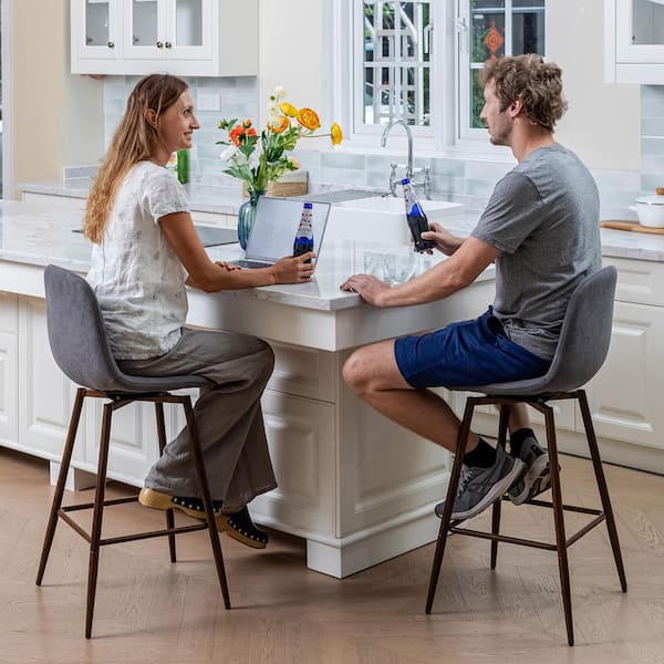 Charlton Stone Grey Fabric 26 in. Counter Height Swivel Bar Stool with Walnut Metal Legs and Curved Seat (Set of 2)