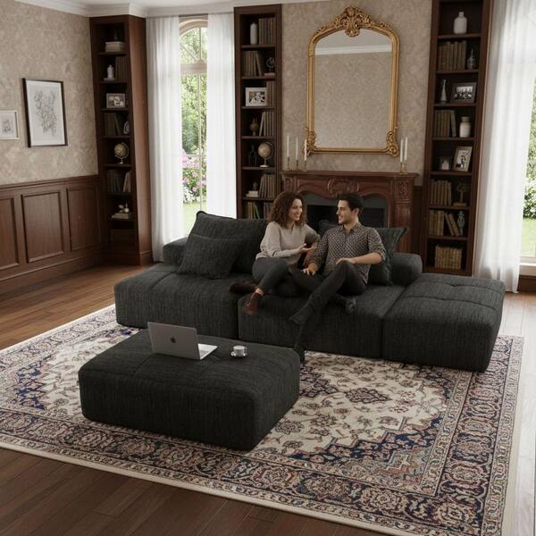 DNLM 141.7 in. 4-Seat Modular Chenille Tufted Sectional Sofa with DIY Layout and Luxe Shine Finish in. Graphite Black