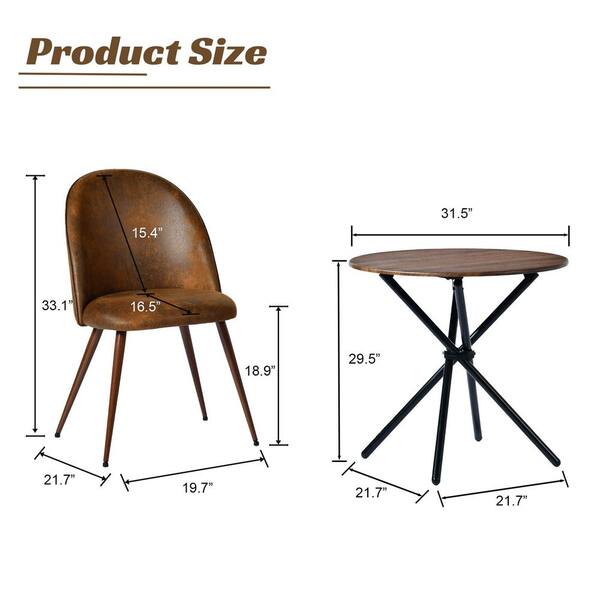 HAVFONTANA 3-Piece Mocha Walnut Round Wood Dining Table Set with 2 Upholstered Chairs in Saddle Brown (Seats 2)