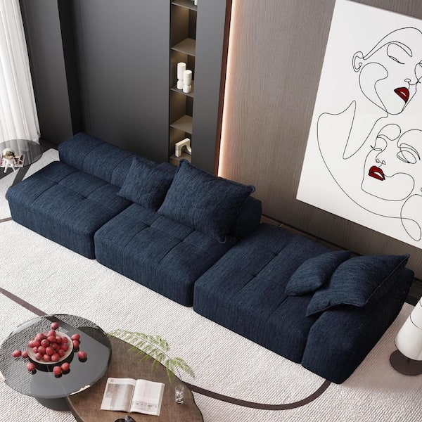 HJCSQJ 128 in. Chenille 4-Seat Modular Tufted Sectional Sofa with DIY Layout & No-Assembly Design in. Ink Navy