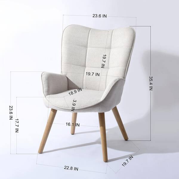 KAN Modern Wingback Office Task Chair with Tufted Back, Soft Beige Fabric Seat, and Wood Legs