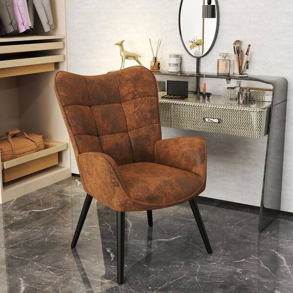 KANYAN Modern Makeup Vanity Chair with Wide Backrest, Available in Walnut, Iron Legs, Perfect for Bedroom Makeup Station