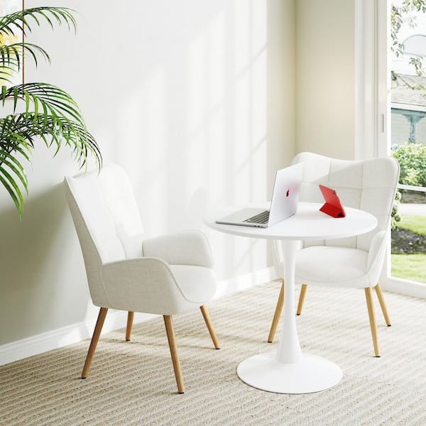 KEYUS 3-Piece Round Dining Set with Beige Fabric Chairs and White Finish Table-Ideal for Small Spaces