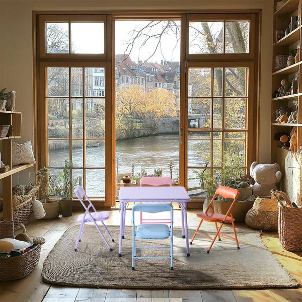 Page Color Amethyst Purple 5-Piece Folding Plastic Kids Square Table Top and 4-Chairs Set, Multicolor and Desk Set