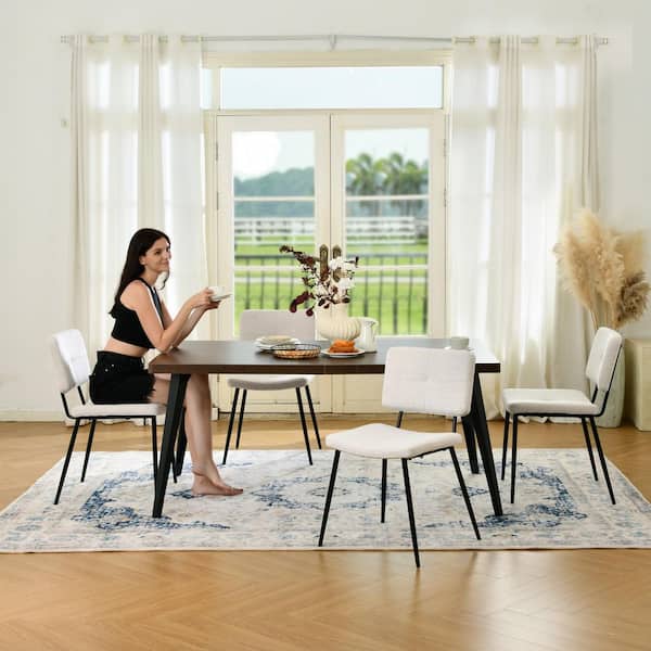 SP 5-Piece Mid-Century Modern Dining Set with Walnut Wood Top Table and Sand Beige Fabric Upholstered Chairs (Seats 4)