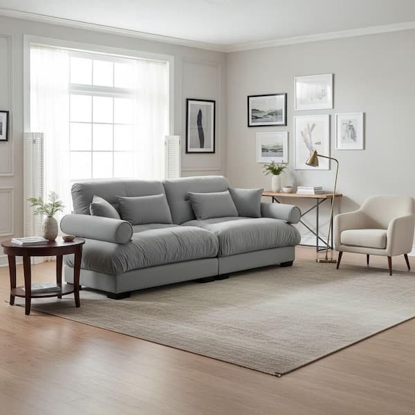 TOAST 93.7 in. Rolled Arm 2-Seater Velvet Rectangle Sofa with Cloud Seat Cotton Cushions in Charcoal Gray