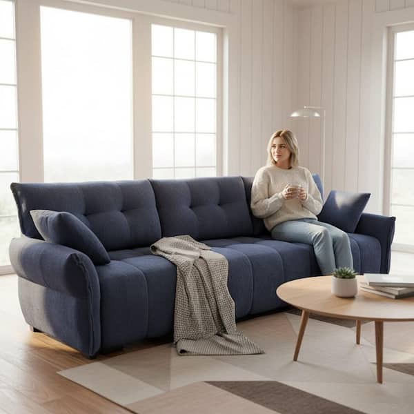 TURTY 110.2 in. Rolled Arm Chenille 3-Seater Rectangle Tufted Sofa with Deep Cushions and Soft Armrests in. Ink Navy