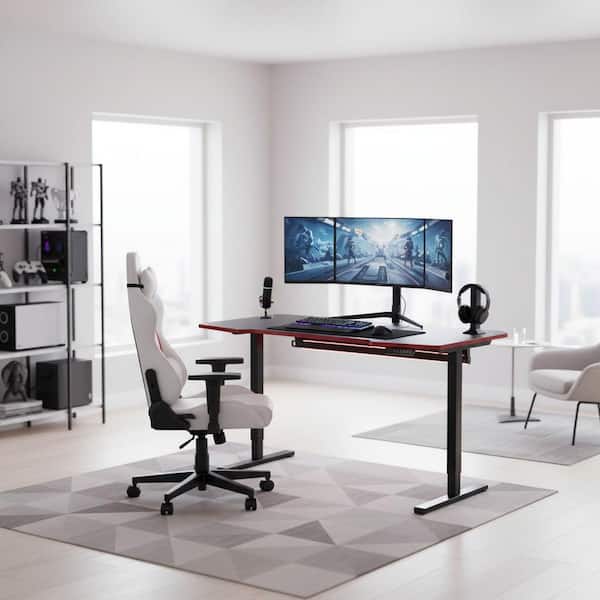 WJSNDW 55.12 x 27.56 in. Jet Black and Scarlet Red Electric Height Adjustable Standing Desk with Dual Motor