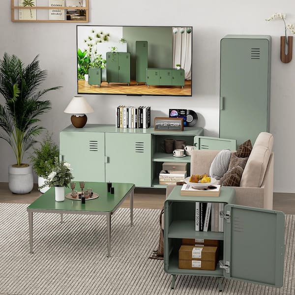 Wattv Grey 47.24 in. Modern Industrial Metal TV Stand with 3-Doors and Interior Shelving for TVs up to 46 in.