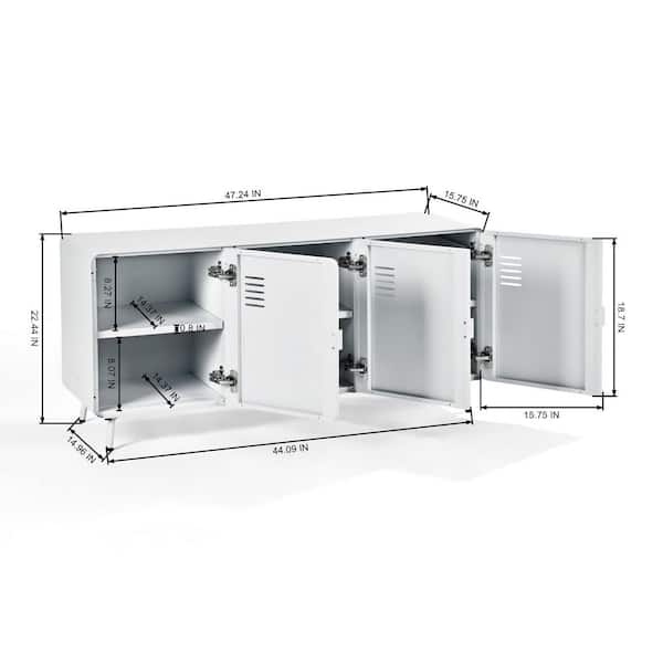 Wattv White 47.24 in. Modern Industrial Metal TV Stand with 3-Doors and Interior Shelving for TVs up to 46 in.