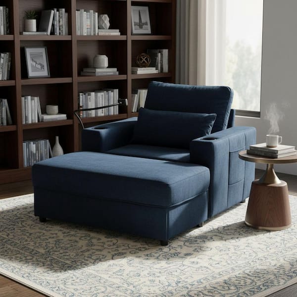 XZYDNJ 51.4 in. Straight Arm Chenille Rectangle Sofa w/ Convertible and Cup Holder Storage and USB Port in Midnight Blue