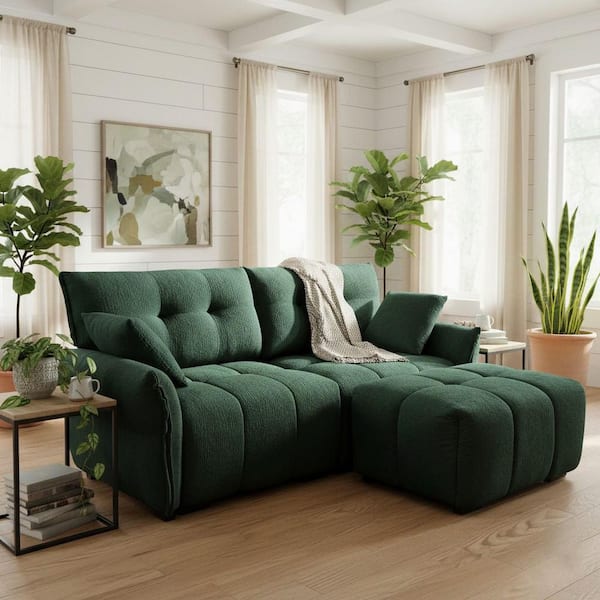 YOYO 78.7 in. Rolled Arm Chenille 3-Seater L-Shaped Tufted Sectional Sofa with Ottoman and Deep Seats in Emerald Green