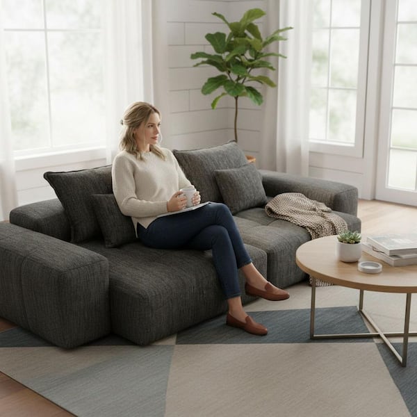 YSLN 113 in. Modular Tufted Chenille 4-Seater Sectional Sofa in. Graphite Black with Luxe Sparkle Fabric and No-Assembly