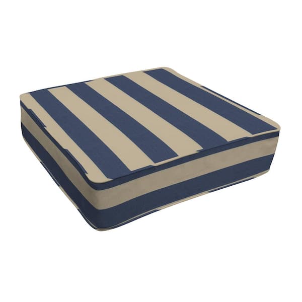 Outdoor Deep Seating Lounge Seat Cushion Cabana Stripe Blue and Khaki