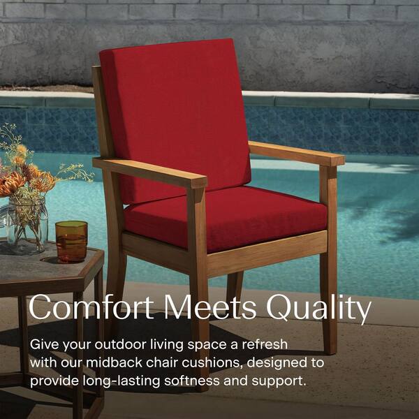 Outdoor Midback Dining Chair Cushion Textured Solid Imperial Red