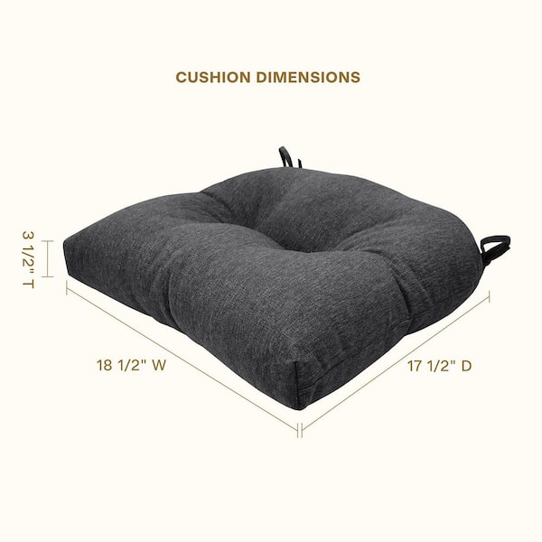 Outdoor Tufted Dining Seat Cushion Textured Solid Charcoal Grey (Set of 2)