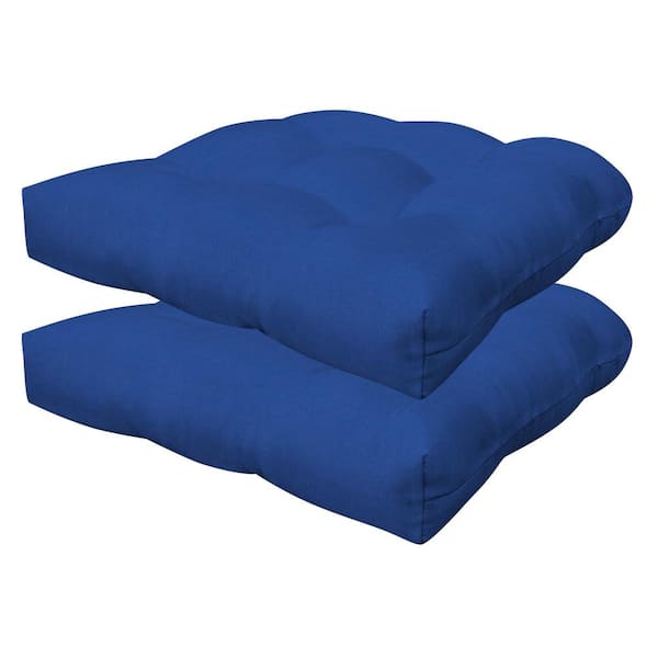Outdoor Tufted Dining Seat Cushion Textured Solid Sapphire Blue (Set of 2)