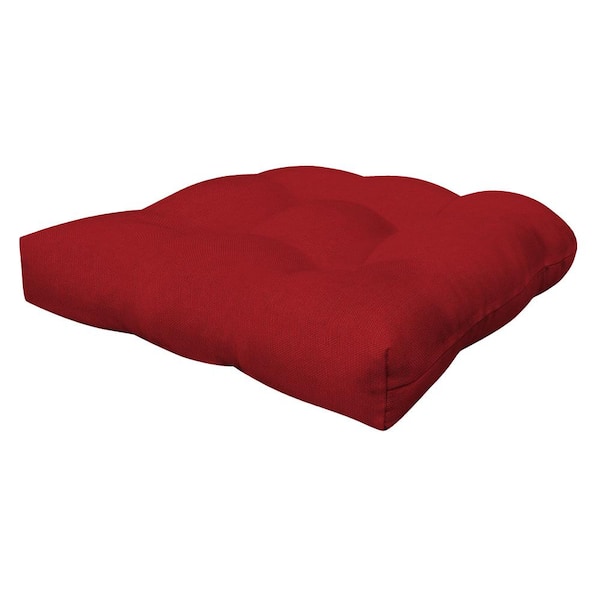 Outdoor Tufted Dining Seat Cushion Textured Solid Scarlet Red (Set of 2)