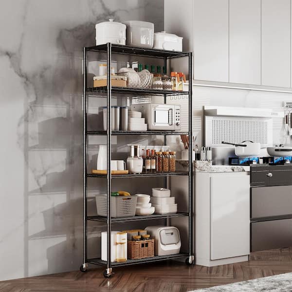 6-Tier Collapsible Storage Shelves for Garage Kitchen Room Folding Pantry Shelves Wire Shelving in Black