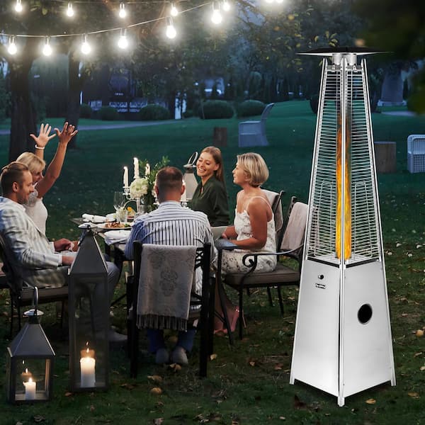 Outdoor 40,000 BTU Silver Propane Heater, Steel Pyramid Flame Heater