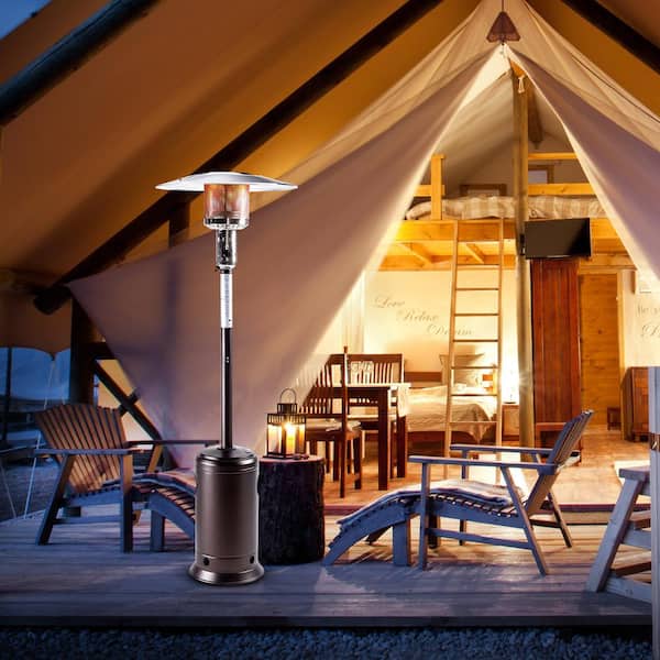 Outdoor 47,000 BTU Brown Stainless Steel Patio Propane Heater with Portable Wheels
