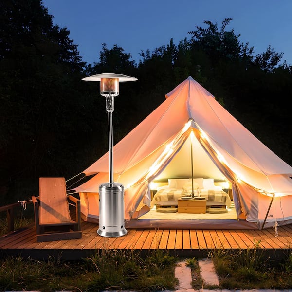 Outdoor 47,000 BTU Silver Stainless Steel Patio Propane Heater with Portable Wheels