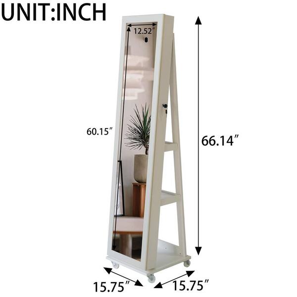 Hot Sale 360° Swivel White Wood Jewelry Box Cabinet With Full Length Mirror for Jewelry Decor, Ring