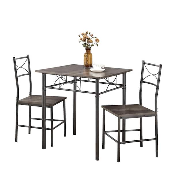Hot Seller 3-Piece Outdoor Metal and Wood Dining Table Set for Patios, Backyards, Porches, Gardens, Poolside, Grey