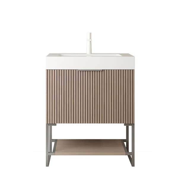 HotSale 24 in. W FreestandingPlywood BathroomVanity in Brown Cabinet with WhiteAcrylic Top and SinkDrawer and OpenShelf