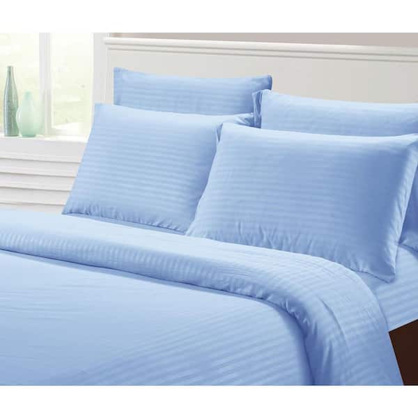 Hotel Club 4 Piece Blue Striped Microfiber Twin Size Deep Pocket Sheet Set