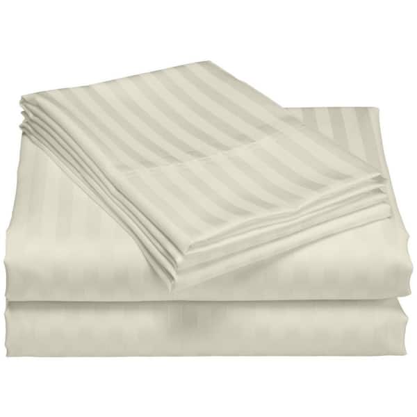 Hotel Club 6 Piece Ivory Striped Microfiber King Size Deep Pocket Sheet Set