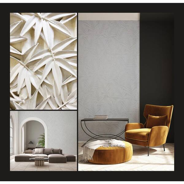 Hotel Collection Beige Botanical Palm Leaf Glitter Finish Non-Pasted Non-Woven Wallpaper Roll