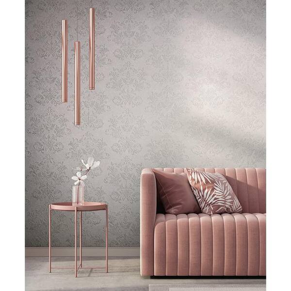 Hotel Collection Pink Embossed Damask Glitter Finish Non-Pasted Non-Woven Wallpaper Roll