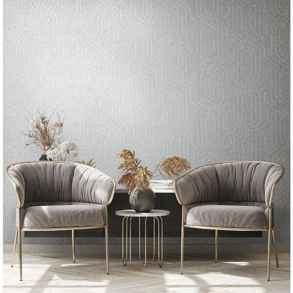 Hotel Collection Silver Embossed Geometric Trellis Glitter Finish Non-Pasted Non-Woven Wallpaper Roll