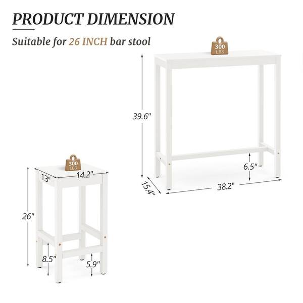 38 in. White Solid Wood Counter Height Pub Table Set with Bar Stools Dining Set Counter Indoor Outdoor Furniture 3-Piece
