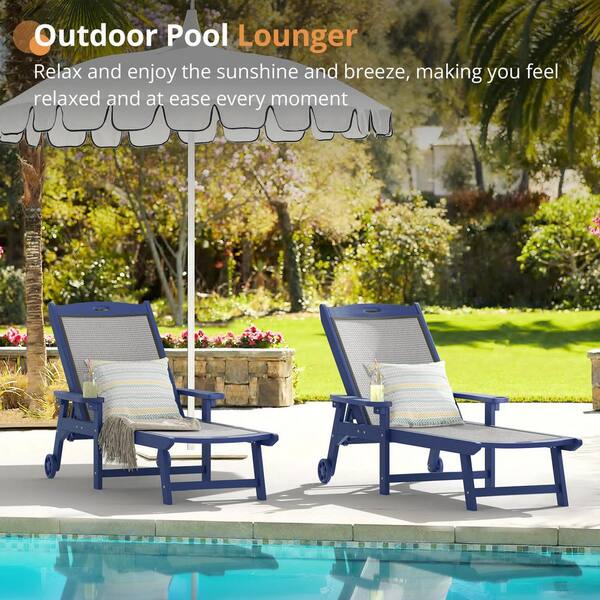 4-Piece Navy HDPS Plastic Patio Outdoor Chaise Lounge Chairs with Wheel Adjustable Textilene Recliner