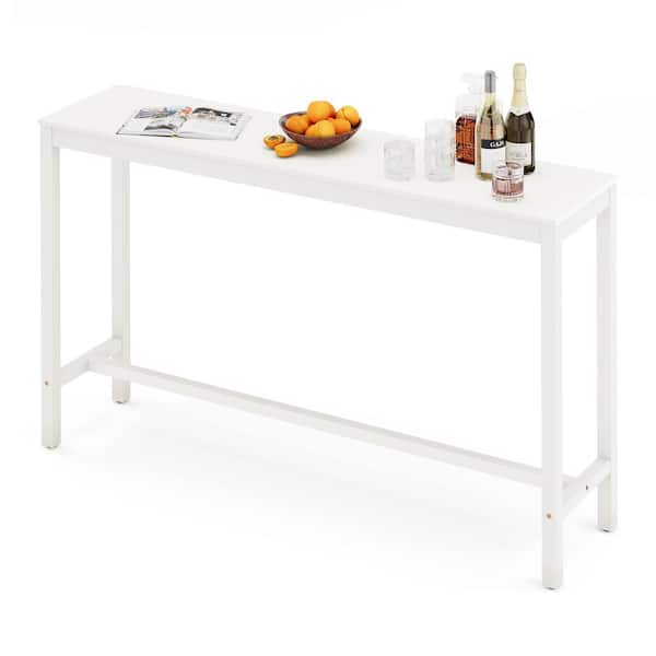 63 in. White Outdoor Bar Table Acacia Wood Outdoor Dining Table Weather-Resistant Bistro Table Indoor Outdoor Furniture