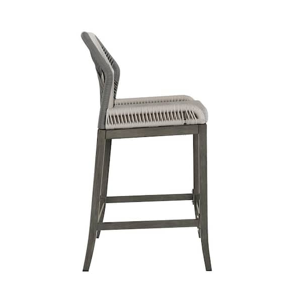 Shanks Rattan Aluminum Frame Slate Gray Boho Counter Height Outdoor Bar Stool with Woven Rope Back (Set of 2)