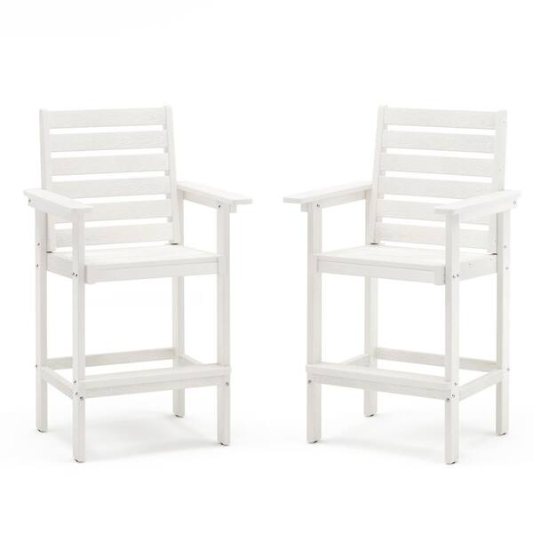 White Plastic HDPE Outdoor Bar Stool with Arms (2-Pack)