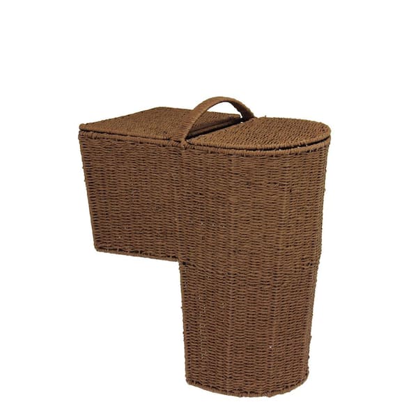 Rich Brown Stained Paper Rope Stair Step Basket with Round Front and Lid