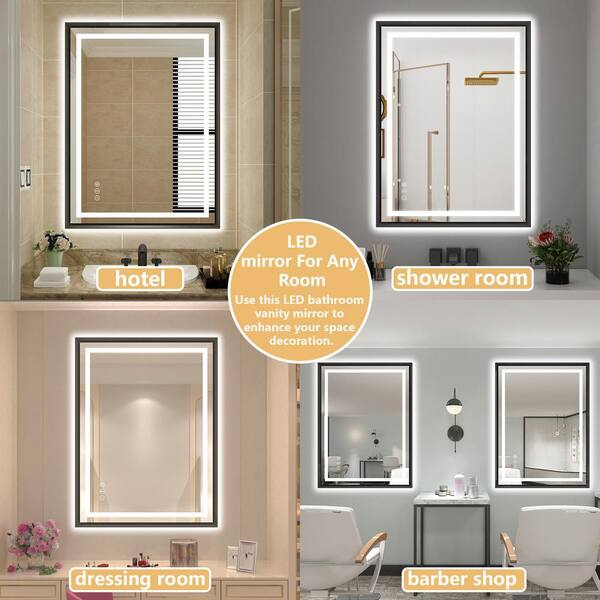 24 in. W x 32 in. H Rectangular Aluminum Slope Framed Backlit Front Light Wall LED Bathroom Vanity Mirror in Matte Black
