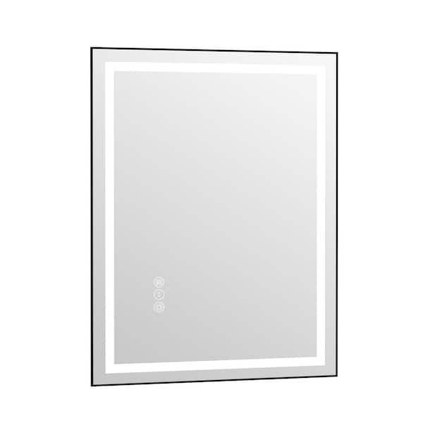 36 in. W. x 28 in. H Large Rectangular Framed Anti-Fog LED Light Wall Mounted Bathroom Vanity Mirror in Matte Black