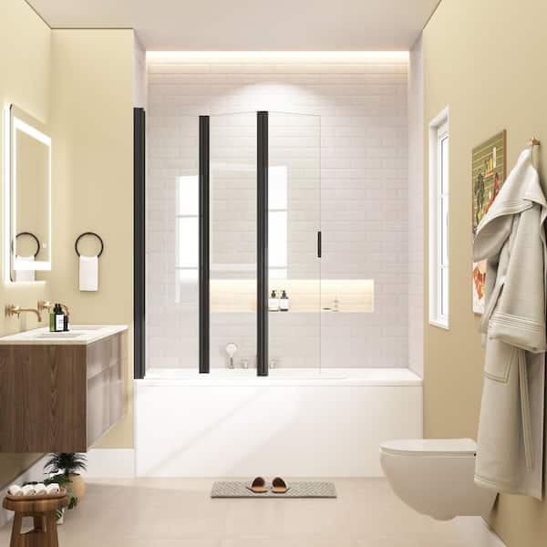 47 in. W x 59 in. H Foldable Hinged Pivot Tub Door in Matte Black with Clear Tempered Glass