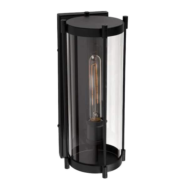 Hudson 1-Light Black Outdoor Wall Lantern Sconce with Clear Glass