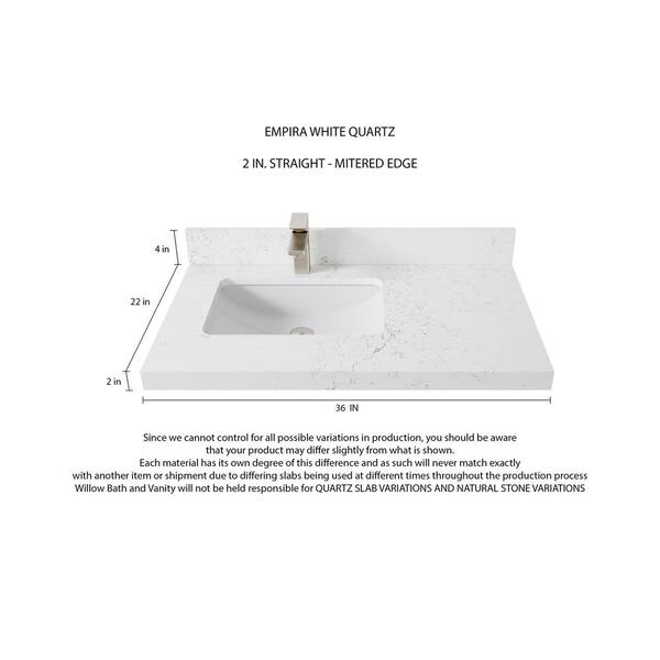 Hudson 36 in. W x 22 in. D x 36 in. H Left Offset Sink Bath Vanity in Black with 2 in. Empira Quartz Top